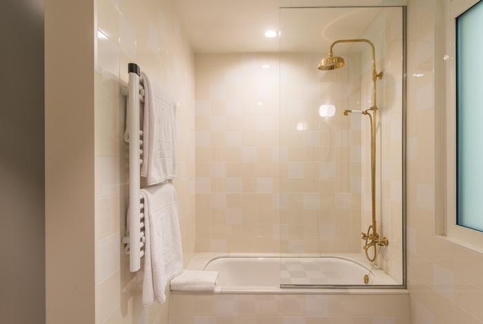 Nos chambres se distinguent par leur surface d'environ 33 m2 ainsi que par l'agencement de type loft avec deux ambiances séparées. D'un côté la chambre avec grand lit, de l'autre un salon confortable. Elles sont équipées de grand lit avec matelas de 32 cm de dernière génération et Top Nimbos, baignoire, lavabo double vasque, coffre-fort, minibar, Wi-Fi, smart TV, fer à repasser, machine Nespresso et bouilloire.