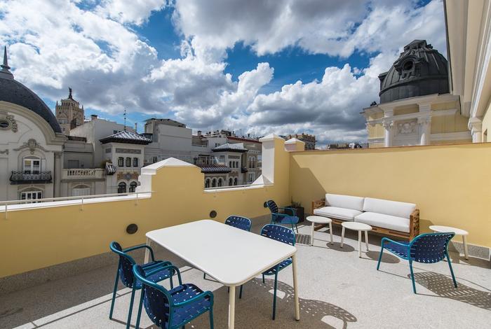 L'un de nos secrets les mieux gardés ! Chambres doubles confortables au dernier étage de l'hôtel avec terrasse de 13 m2 et vues incroyables de Madrid ou de la Gran Vía. Elles sont équipées de 2 lits twin avec matelas de 32 cm de dernière génération et Top Nimbos, douche effet pluie, coffre-fort, minibar, Wi-Fi, smart TV, fer à repasser, machine Nespresso et bouilloire.